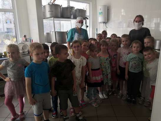В рамках тематического дня, воспитанники подготовительной логопедической группы побывали с экскурсией на кухне детского сада. Дети прочитали стихотворение-поздравление и вручили подарки, сделанные своими руками и с большой радостью, поблагодарили поваров за вкусные и полезные завтраки, обеды и полдники.