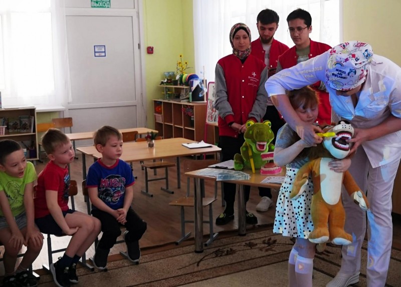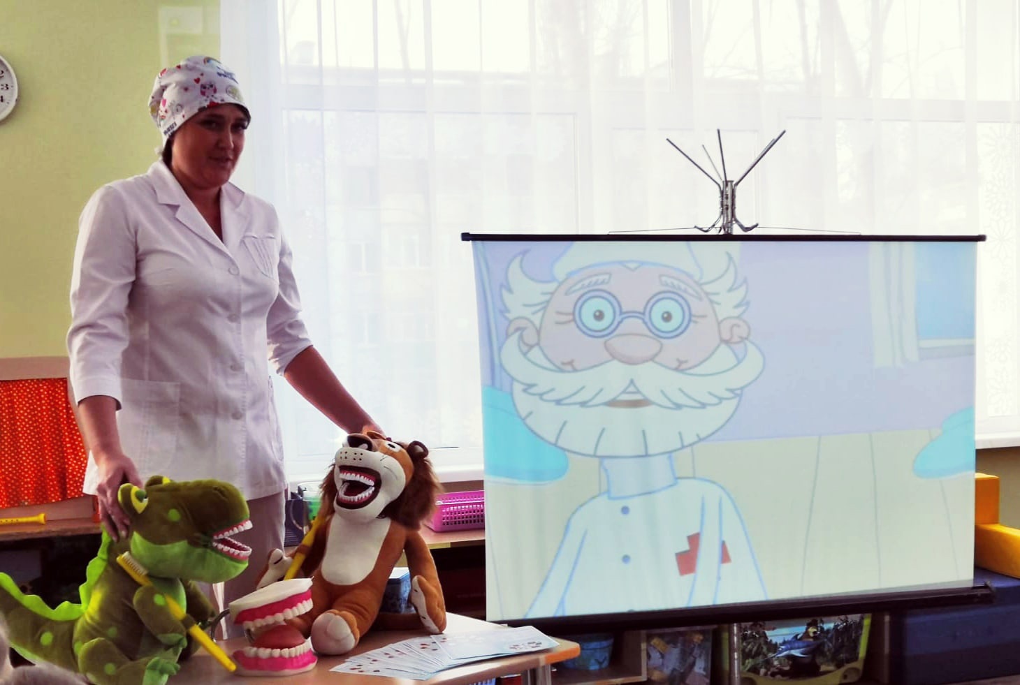 В рамках проекта «Здоровые зубы — красивая улыбка» с воспитанниками детского сада 123 «Семицветик» встретились врачи Пензенской стоматологической поликлиники Овчаренко Ольга Петровна и Рахимова Эльвира Равильевна. Они рассказали детям, как правильно пользоваться зубной щёткой, ухаживать за полостью рта, питаться, чтобы зубы были здоровыми, крепкими и красивыми. Волонтёры из направления «Стоматологическое здоровье» показали детям, как правильно чистить зубы, чтобы не повредить эмаль. А из видео мультфильма ребята узнали, как важна правильность ухода за зубками с самого детства.