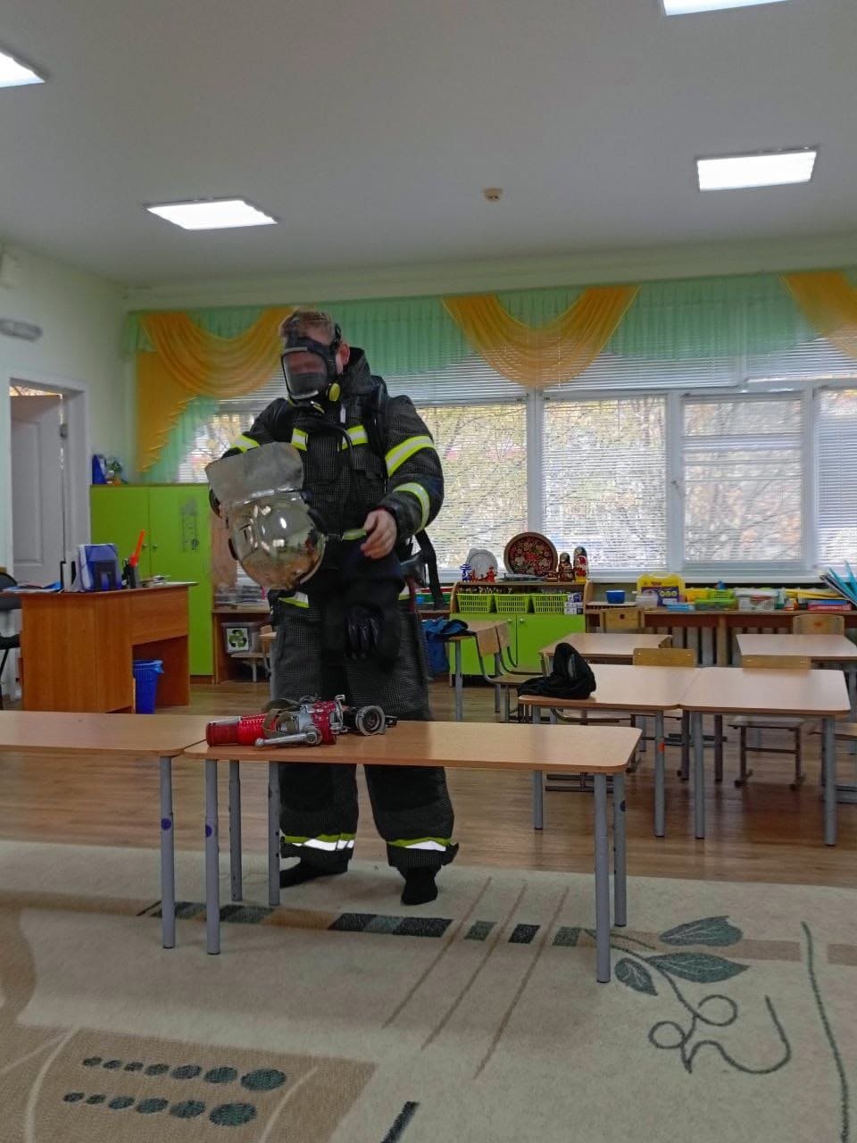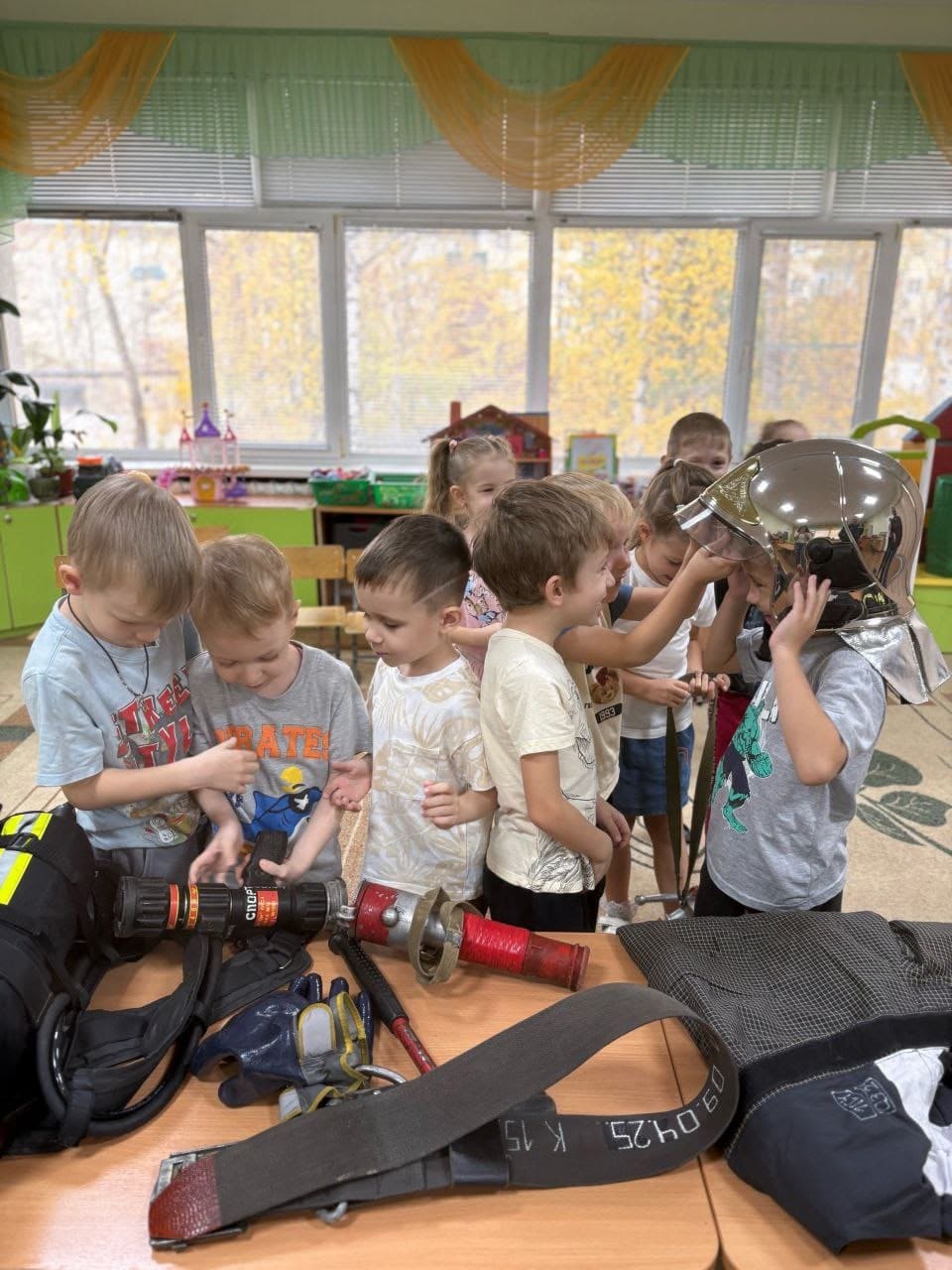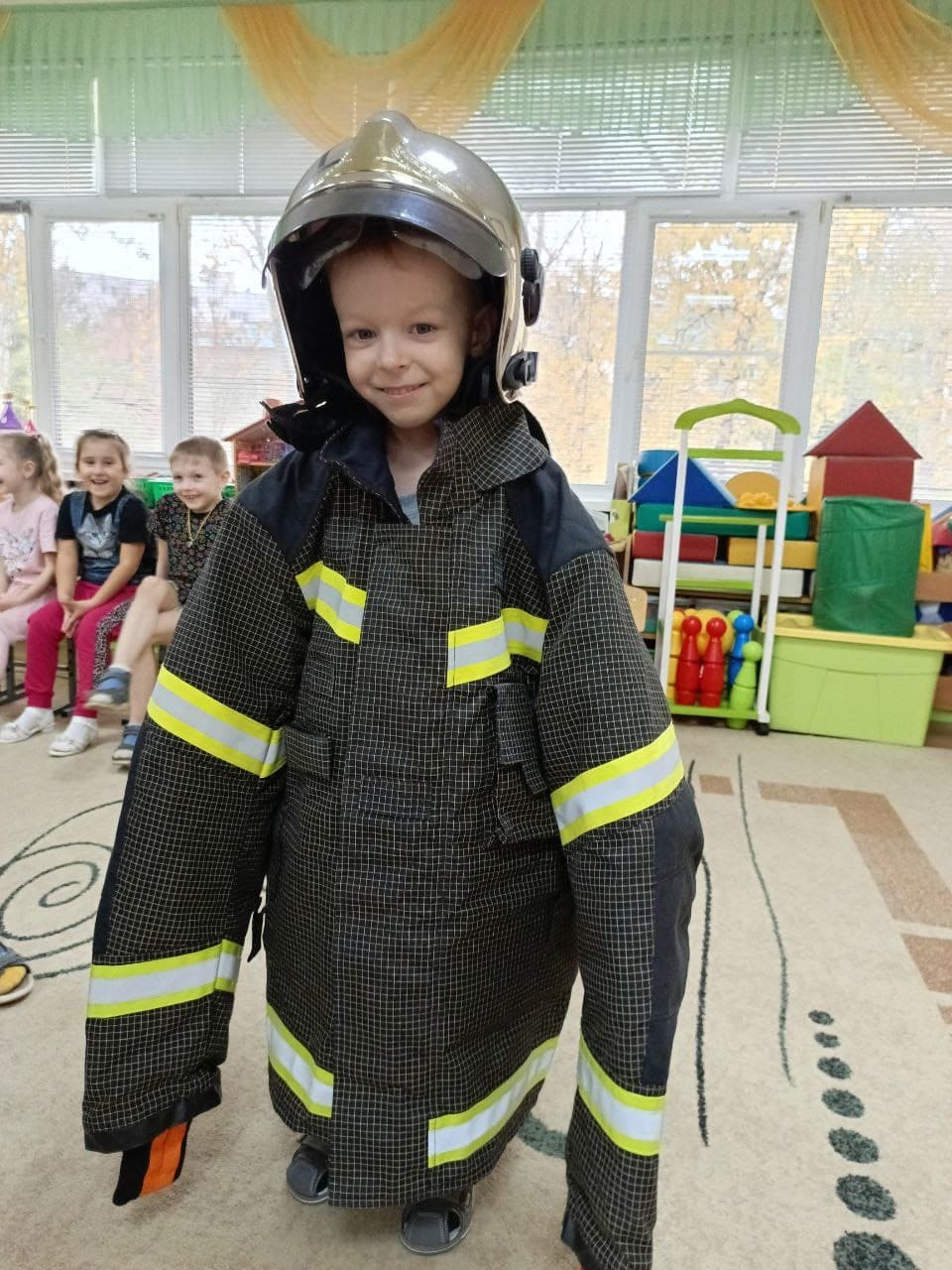 Владимир Юрьевич принес с собой много интересных вещей и рассказал о работе пожарного!Дети получили приглашение посетить пожарную часть!!