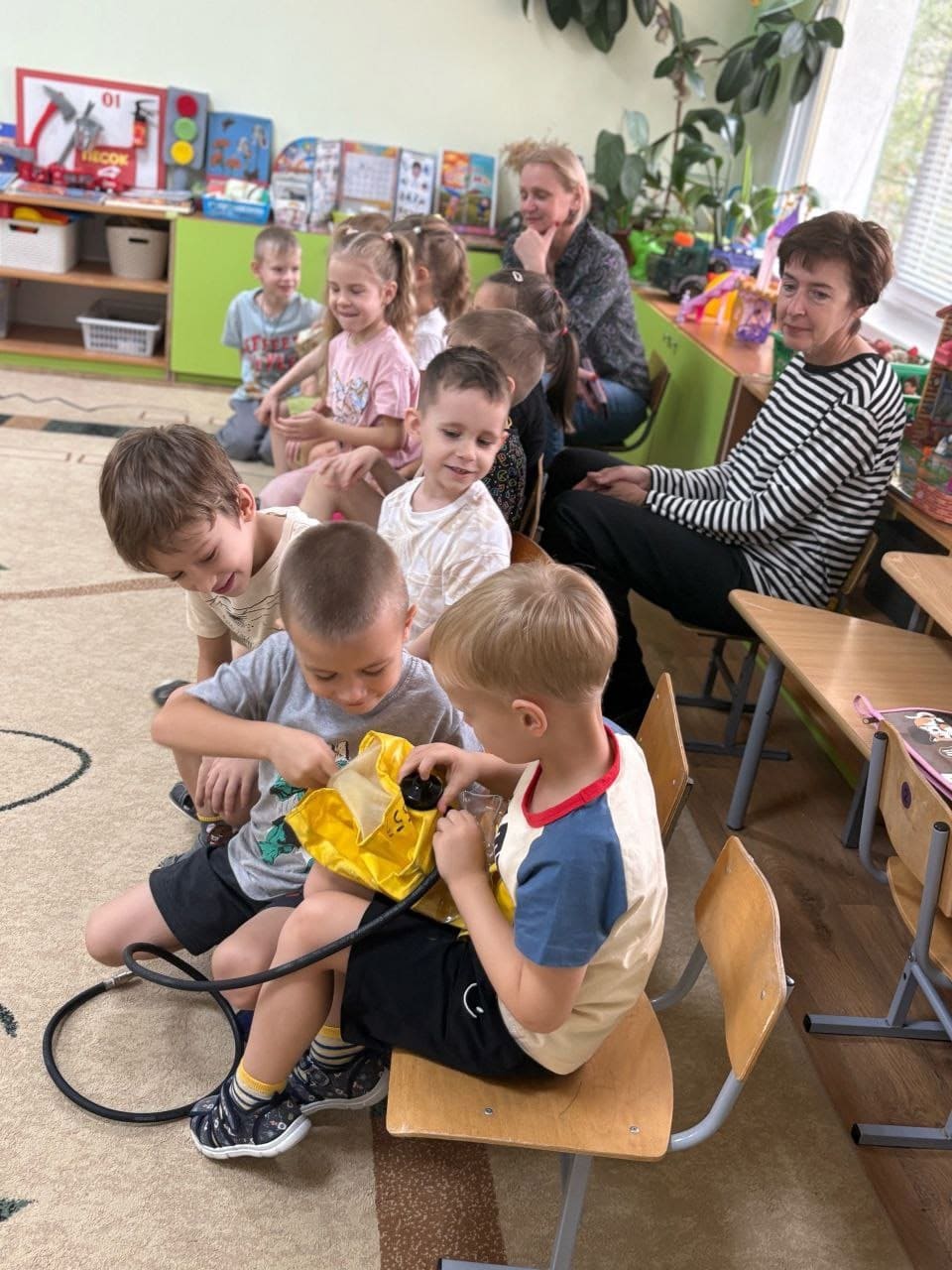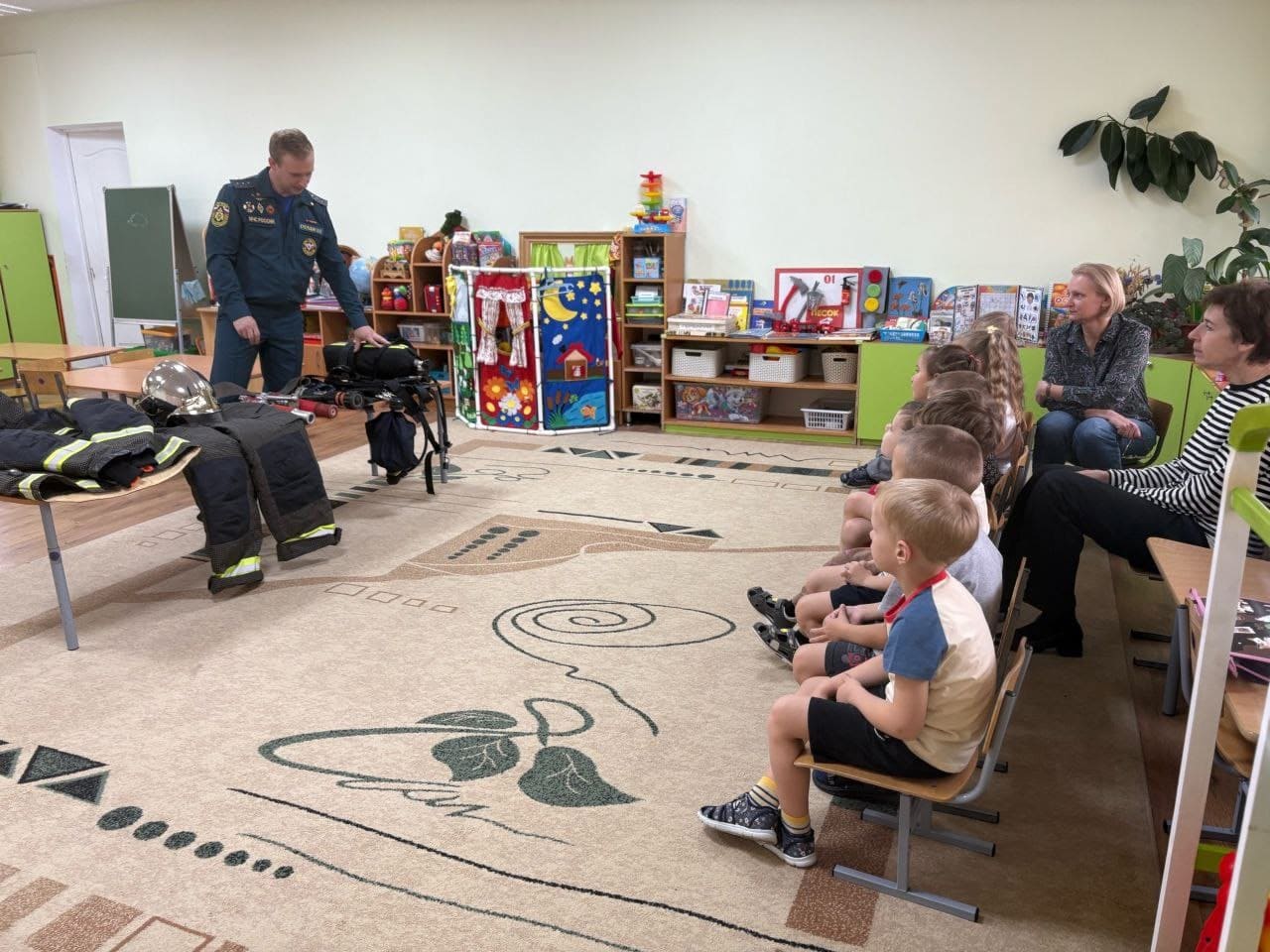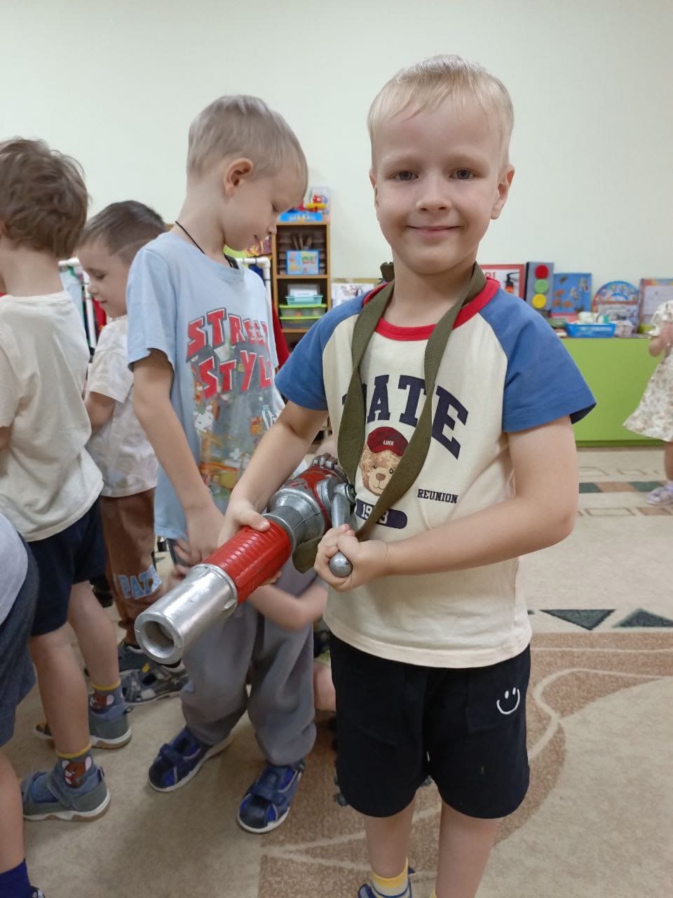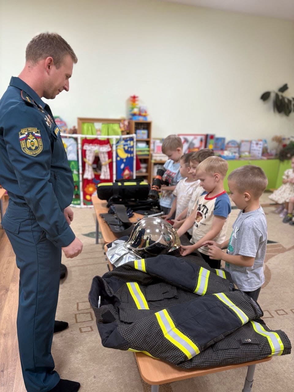 Владимир Юрьевич принес с собой много интересных вещей и рассказал о работе пожарного!Дети получили приглашение посетить пожарную часть!!