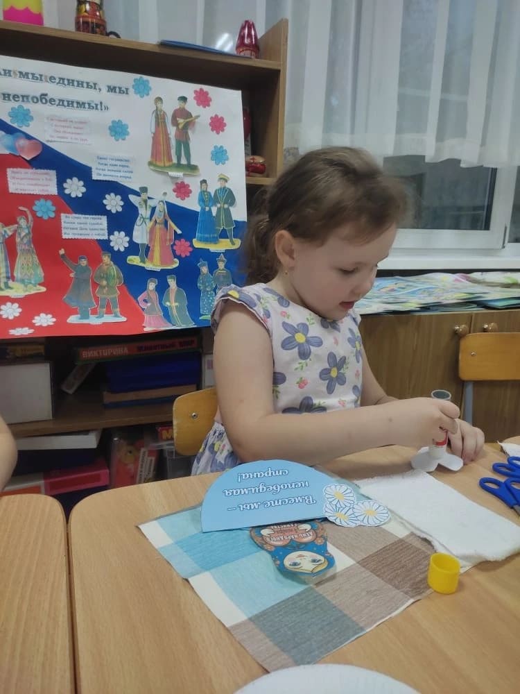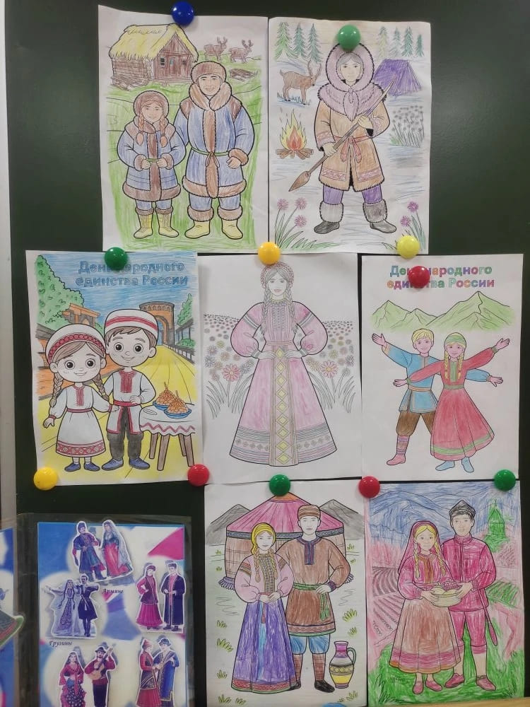 В преддверии праздника День народного единства в старшей группе прошло тематическое занятие, на котором дети познакомились с историей праздника, рассмотрели сюжетные и предметные картины, посмотрели презентацию, сделали своими руками открытки, оформлена выставка рисунков, выполненных при помощи родителей.