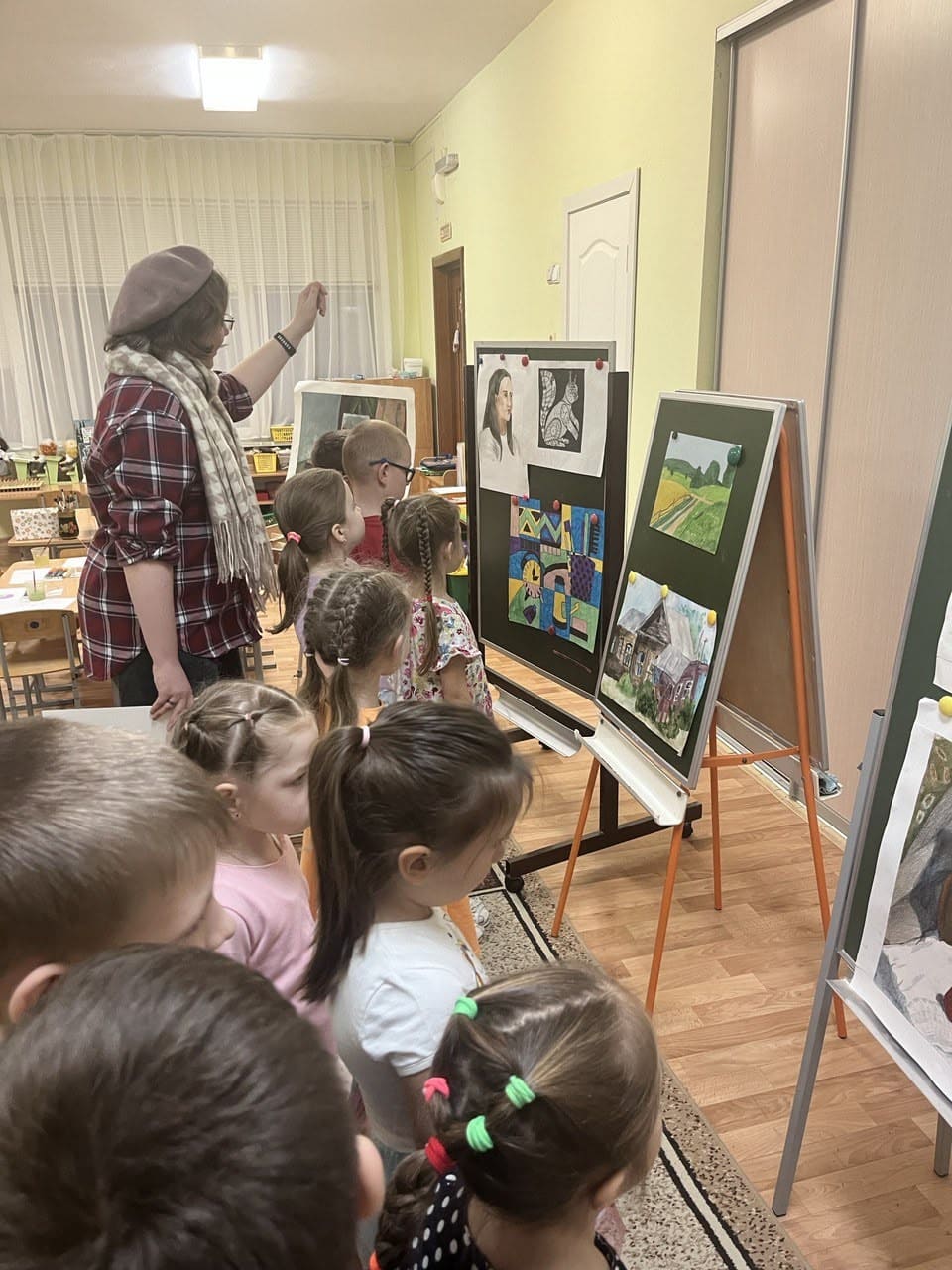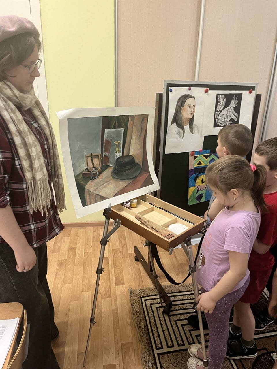 В гости пришла юная художница, ученица 1 курса Пензенского художественного училища им К. А. Савицкого Полина Костина, рассказала детям много интересного о мире искусства и о профессии, с которой хочет связать свою дальнейшую жизнь.