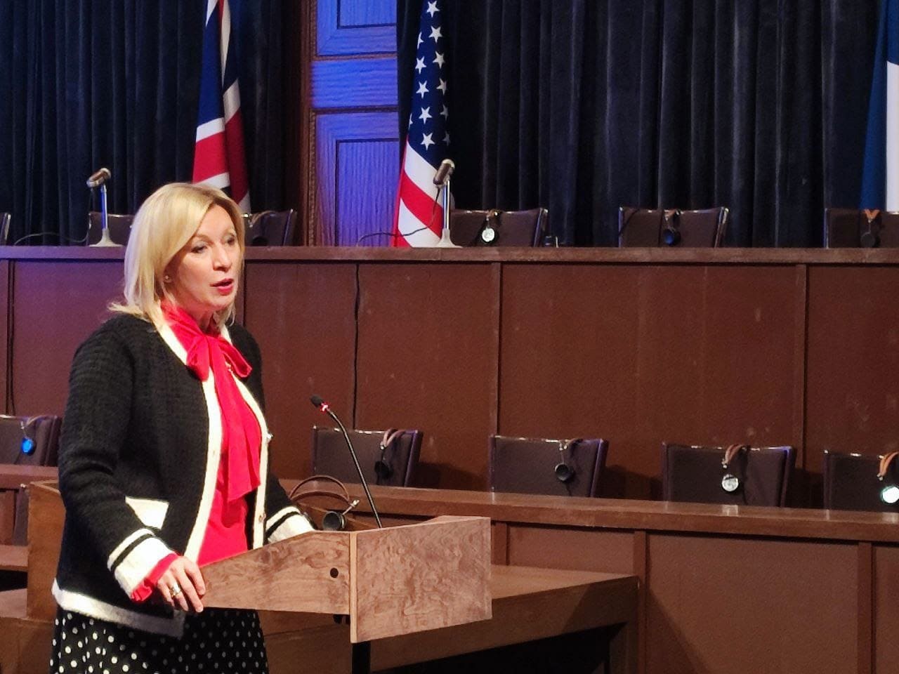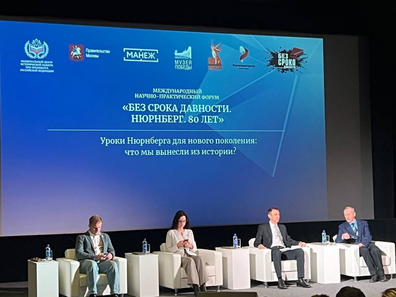 Пленарное заседание форума прошло в уникальном пространстве – частично воссозданном интерьере зала № 600 Дворца правосудия в Нюрнберге, где в 1945-1946 годы проходил Суд народов.