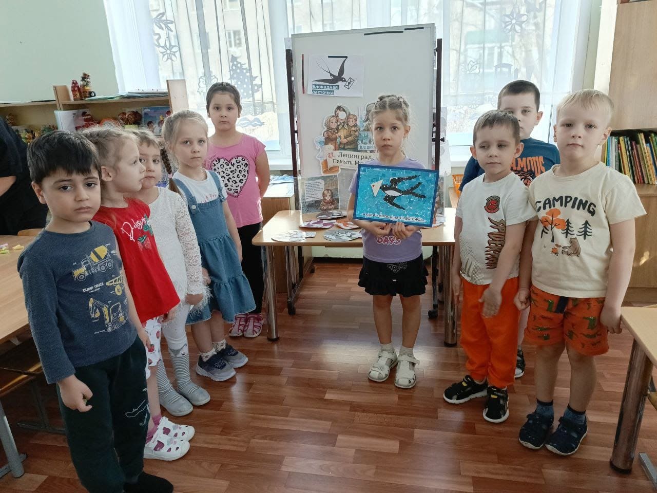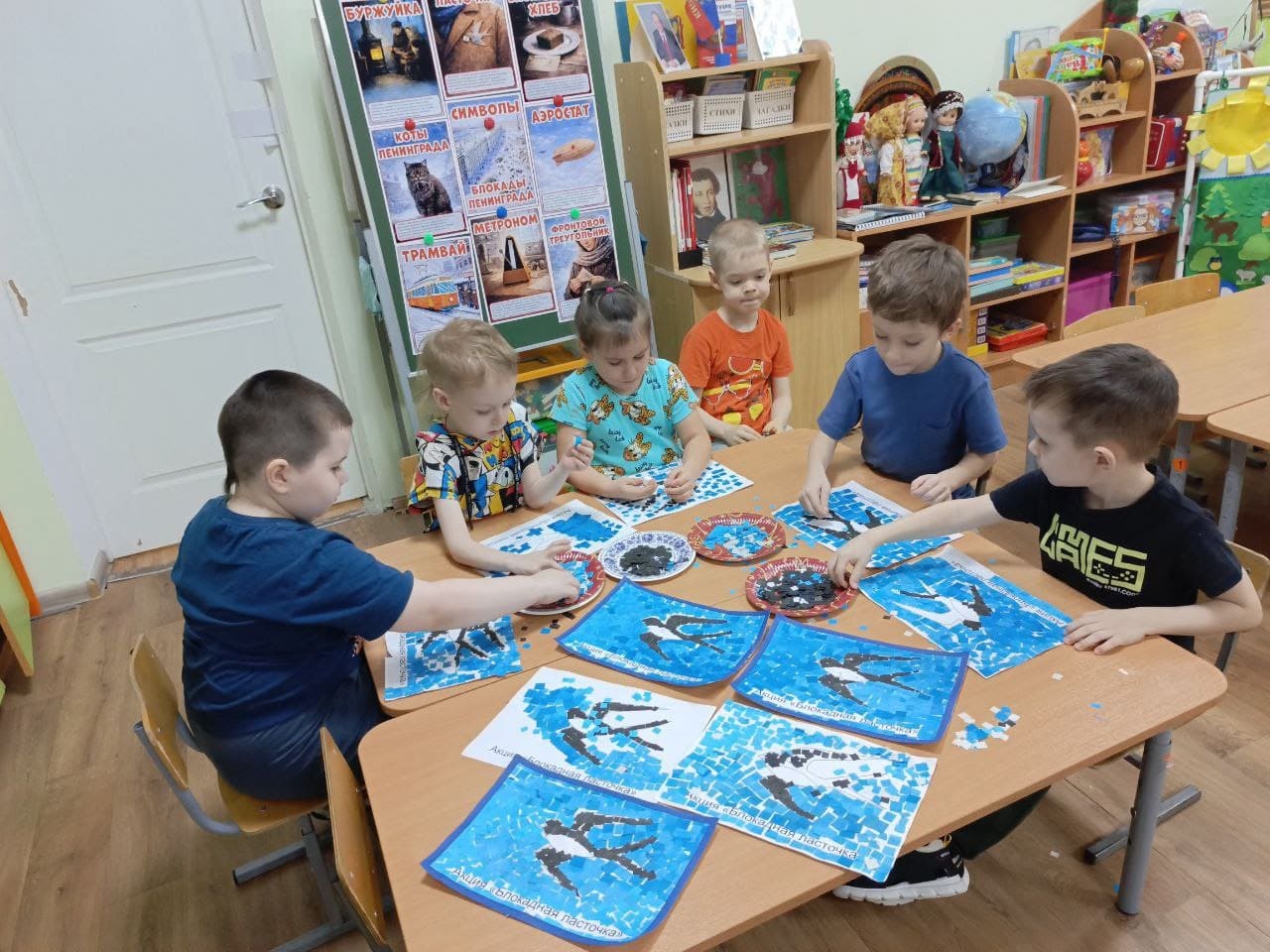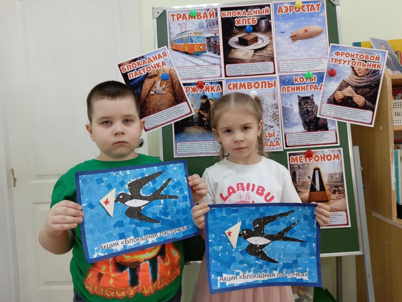 Это акция памяти, которая объединяет людей всех возрастов. В рамках этой инициативы ребята посмотрели видеофильм «Блокадная ласточка», познакомились с символами блокадного города, сделали мозаичное панно, символические ласточки – символы надежды и мира.