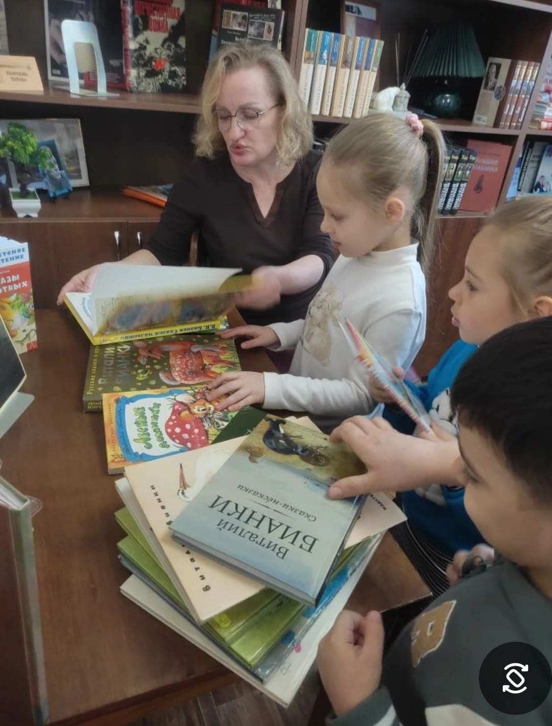 Дети старшей группы, с родителями и воспитателями, посетили библиотеку им. Задорнова и прикоснулись к волшебному миру природы, убедились в том, что открытия ждут нас, буквально, на каждом шагу. Его рассказы и сказки — результат тонких наблюдений за природой: «Лесная газета»,» Синичкин календарь», «Лесные домишки»,» Чей нос лучше», «Повести о животных» и многие другие произведения были предложены детям. И, конечно, понравившиеся книги дети взяли домой для семейного чтения!