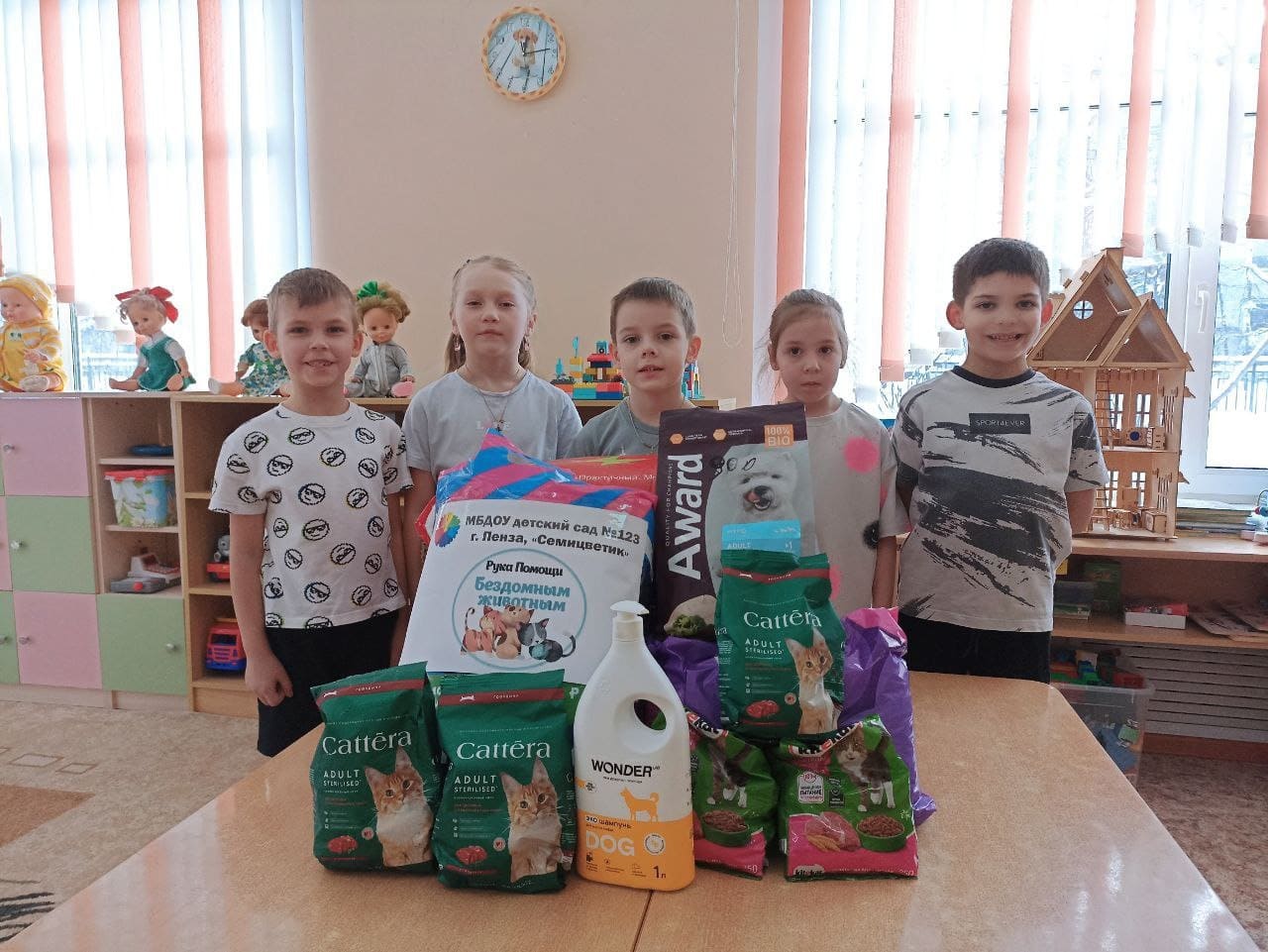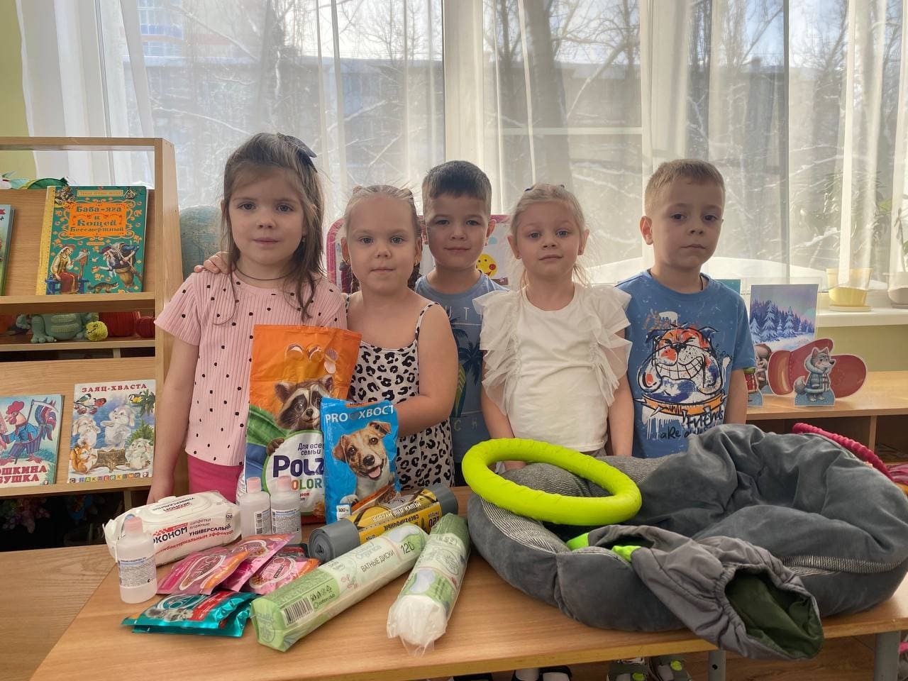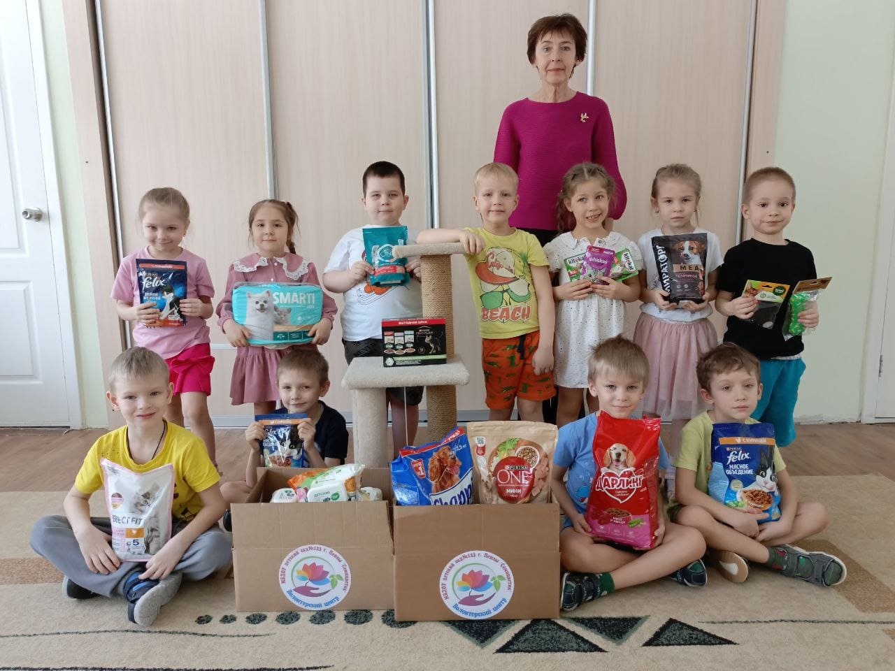 Ребята передали собранные подарки Благотворительному Фонду» Рука помощи бездомным животным». Ребята с удовольствием погуляли со щенками.